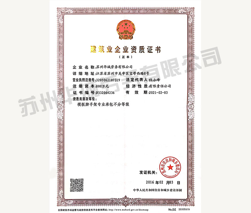 可以承接房屋建筑室內外裝飾裝修業(yè)務。公司下設獨立法人單位-蘇州華城勞務有限公司。